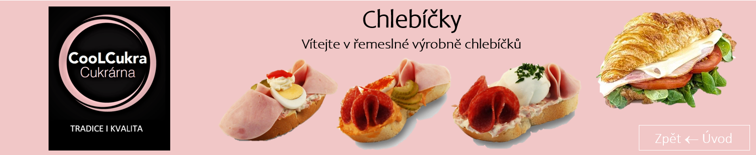 Čerstvé chlebíčky – šunkové, salámové i sýrové. Ideální pohoštění pro každou příležitost. Objednávky zadávejte alespoň 2 pracovní dny předem. Děkujeme za pochopení a přejeme vám sladký den. 🍰. Filtry a řazení (2) Zrušit filtr Rychlé info Chlebíček s Vejcem 100g (1,3,7,10) Počet hvězdiček je 5 z 5 Skladem 45 Kč Do košíku Rychlé info Chlebíček Salámový 100g (1,3,7,10) Skladem 45 Kč Do košíku Rádce Objednejte si Donut´s Objednejte si naše dorty... Objednejte si Dárky s kterými potěšíte ... Objednejte si Pečivo Objednejte si zákusky ... Objednejte si Moravské víno... Další Sdílet Tweet Pin It
